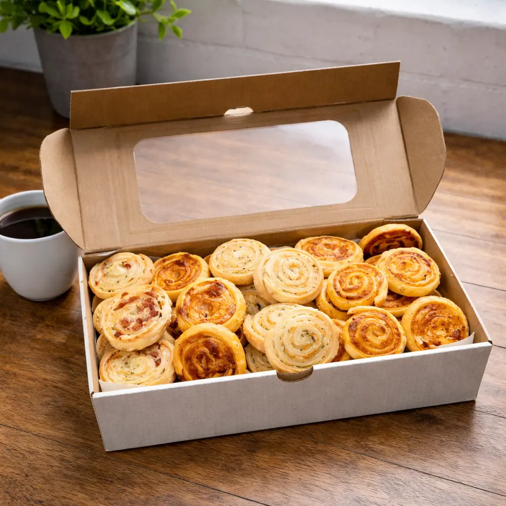 Egységes, omlós tésztából készült, falatnyi péksütemények három népszerű ízvilágban, füstös baconös töltelékkel.