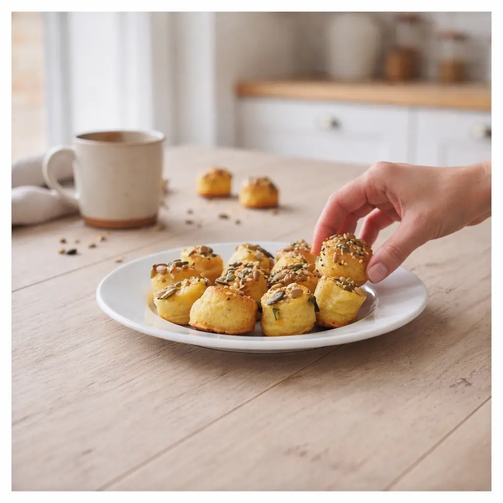 Kívül ropogós, belül pehelykönnyű sós aprósütemény, amelynek tésztájába lágy túrót gyúrtunk a krémes állagért. Sajttal megszórva illetve magvakkal is lehet kérni.