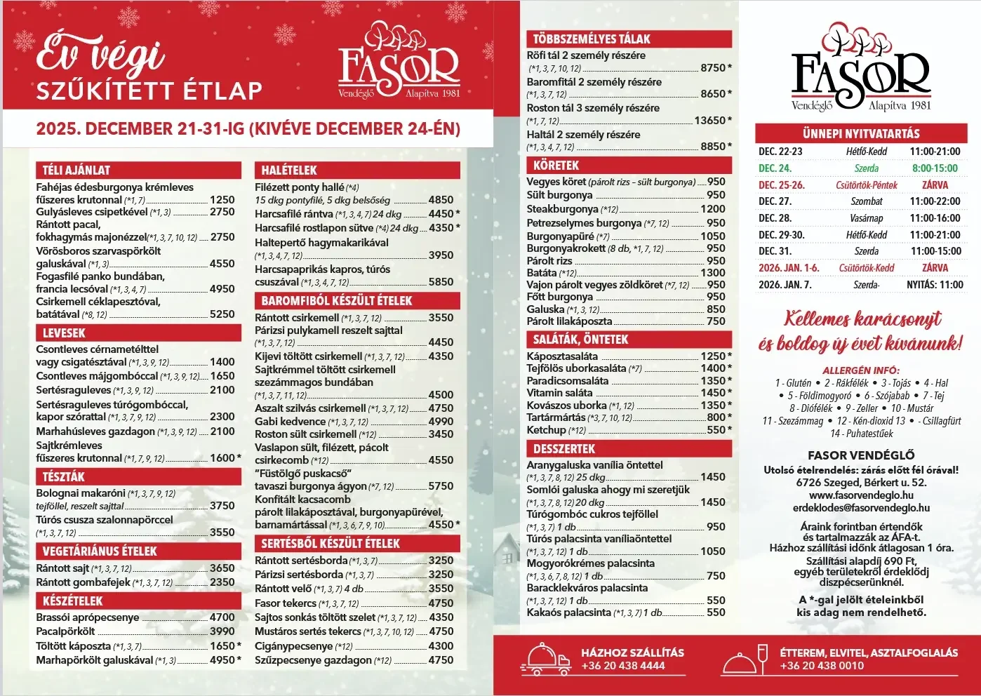 FASOR VENDÉGLŐ – ELÉRHETŐSÉGEK