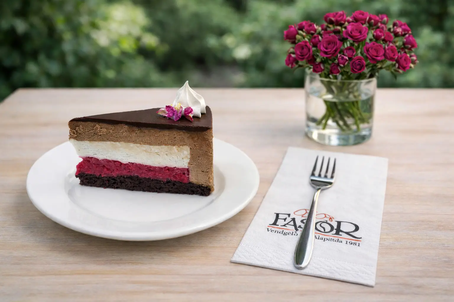 Az édes krémrétegek közé csempészett fanyar málnakrém frissessége tökéletes egyensúlyt teremt.